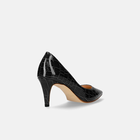 15% OFF: iCoN COLORS: Pointed toe croc embossed pumps (C76534) Black CR