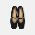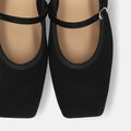 予約:2025AW:スクエアトゥ メリージェーン フラット(m10310)ブラックサテン